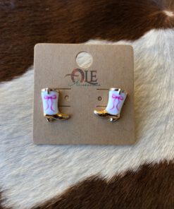 ” Kasie ” Western Boot Earrings ( Pink )