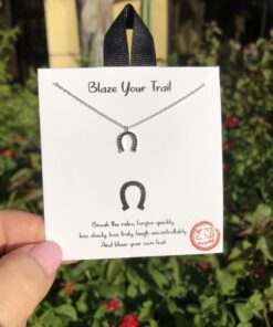 ” Blaze Your Trail ” Horseshoe Pendant Necklace ( Silver / Black )