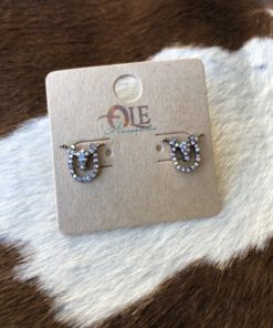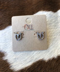 ” Adler ” Small Rhinestone Longhorn On a Horseshoe Earrings ( Clear )