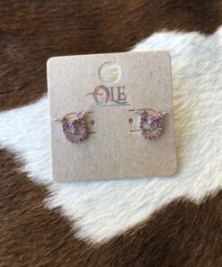 ” Adler ” Small Rhinestone Longhorn On a Horseshoe Earrings ( Pink )