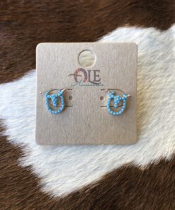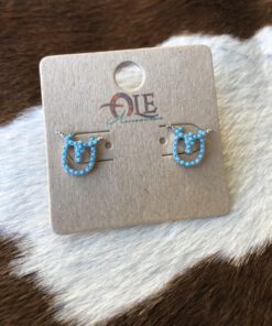 ” Adler ” Small Rhinestone Longhorn On a Horseshoe Earrings ( Turquoise )