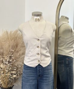 ” Cove ” Linen Vest Top ( Oatmeal )