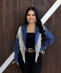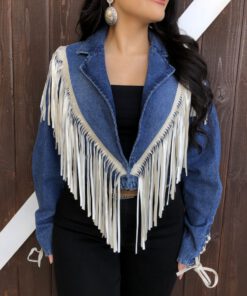 ” Brownyn ” Fringed Cropped Denim Jacket ( Medium Wash )