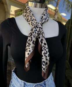 ” Dayanira ” Leopard Animal Print Bandana Scarf ( Cream )