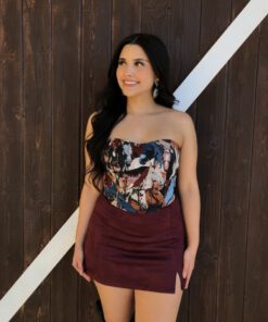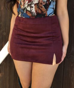 ” Tammie ” Faux Suede Mini Skort With Side Slit ( Burgundy )