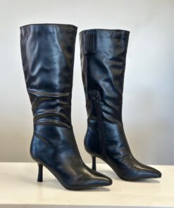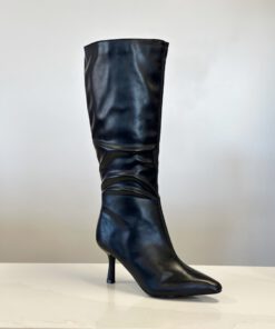 ” VALERIA ” Pointed Toe Mid High Boots ( Black PU )