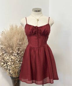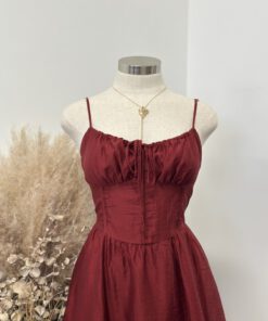 ” Viola ” Gingham Halter Flare Midi Dress ( Brown )