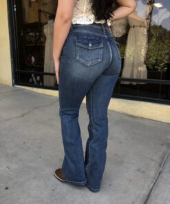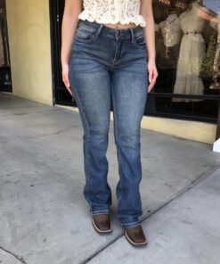 “Jianna” Mid Rise Bootcut With Flap Back Pockets Jeans ( Dark Tint )