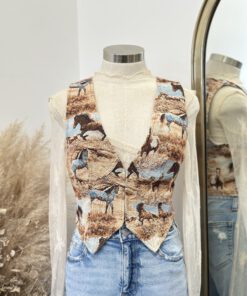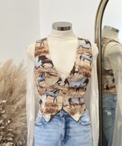 ” Rodeo Girl ” Western Horse Printed Jacquard Vest ( Brown )