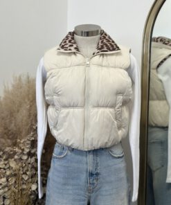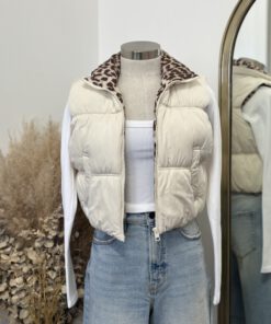 ” Juliette ” Quilted /Leopard Inside Vest ( Ivory )