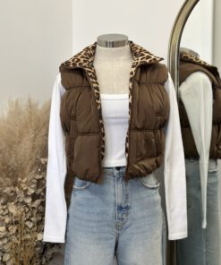 ” Juliette ” Quilted /Leopard Inside Vest ( Brown )