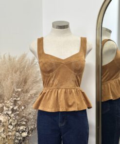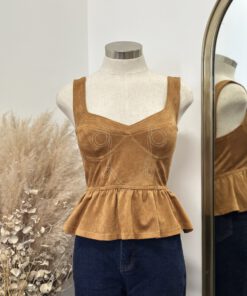 ” Rosalie ” Braided Hem Long Sleeve Sweater Top ( Brown )