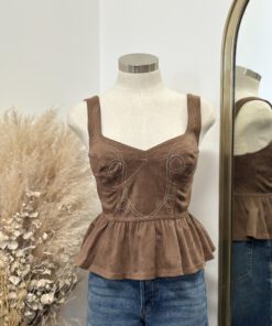 ” Fara” Embo Detail Western Crop Top ( Cream )
