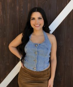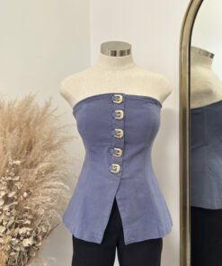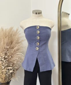 ” Ella ” Western Buckle Strapless Top ( Blue )