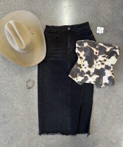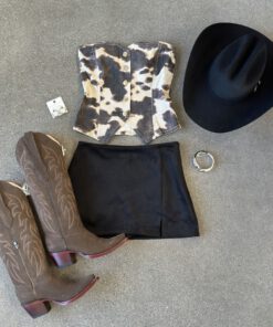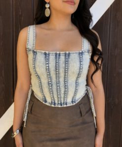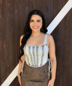 ” Erika ” Denim Cow Print Corset Top ( Cream / Multi )