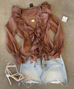 ” Aven” Button Down Ruffle Detailed Blouse ( Brown )