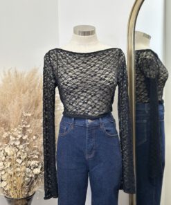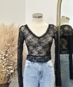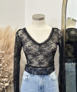 ” Hallie ” Lace Long Sleeve Top ( Black )