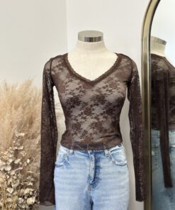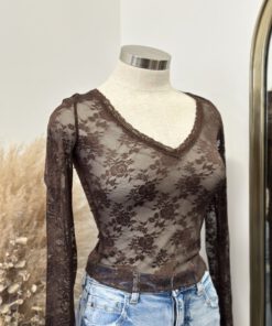 ” Hallie ” Lace Long Sleeve Top ( Brown )