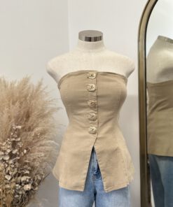 ” Ella ” Western Buckle Strapless Top ( Taupe )
