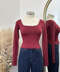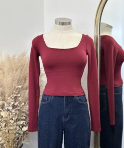 ” Pauline ” Square Neck Long Sleeve Top ( Wine )