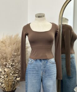 ” Pauline ” Square Neck Long Sleeve Top ( Brown )