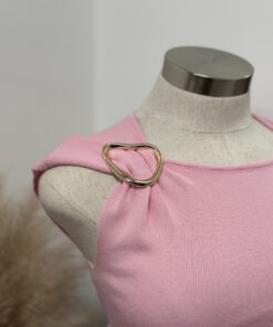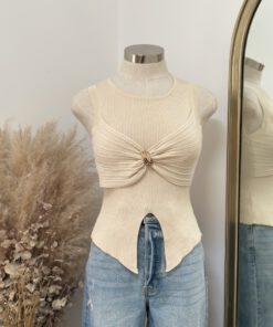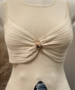 ” Marigold ” Round Neck Ruched Bust Sleeveless Knit Top ( Taupe )