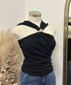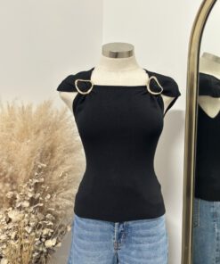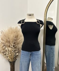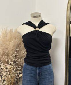 ” Nyra ” Trim Ruched Cf Slvless Knit Top ( Black )