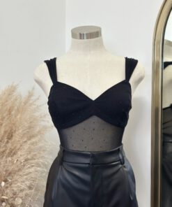 ” Amina ” Rhinestones Embellished Mesh Bodysuit ( Black )