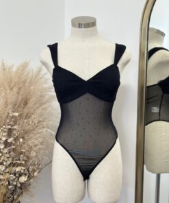 ” Anna” Pearl Mesh Bodysuit ( Black )