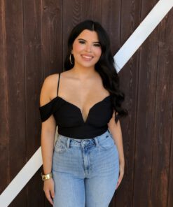 ” Celestia ” V Wire Inset Off Shoulder Bodysuit ( Black )