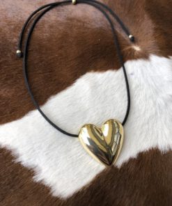 Heart Pendant Adjustable Cord Necklace ( Black / Gold )