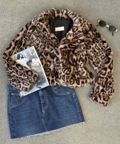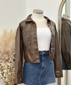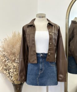” Chrishell ” Pu Faux Leather Cropped Jacket ( Brown )