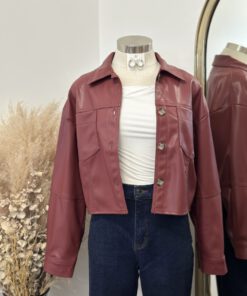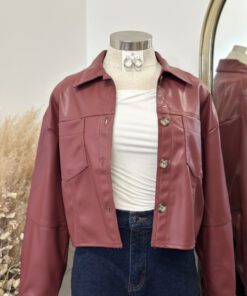” Chrishell ” Pu Faux Leather Cropped Jacket ( Wine )