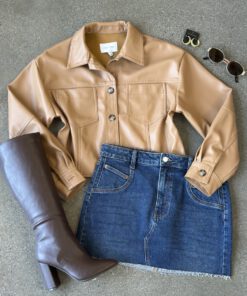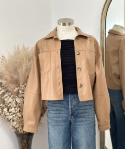 ” Chrishell ” Pu Faux Leather Cropped Jacket ( Camel )
