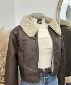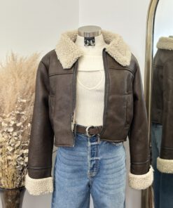 ” Angie ” Faux Leather Sherpa Jacket ( Brown )