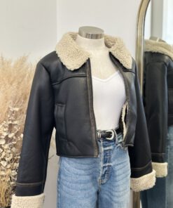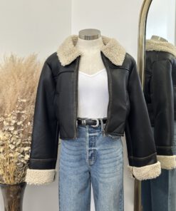 ” Angie ” Faux Leather Sherpa Jacket ( Black )