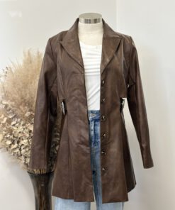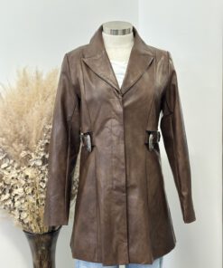 ” Alexandra ” Western Buckle Faux Leather Blazer ( Brown )