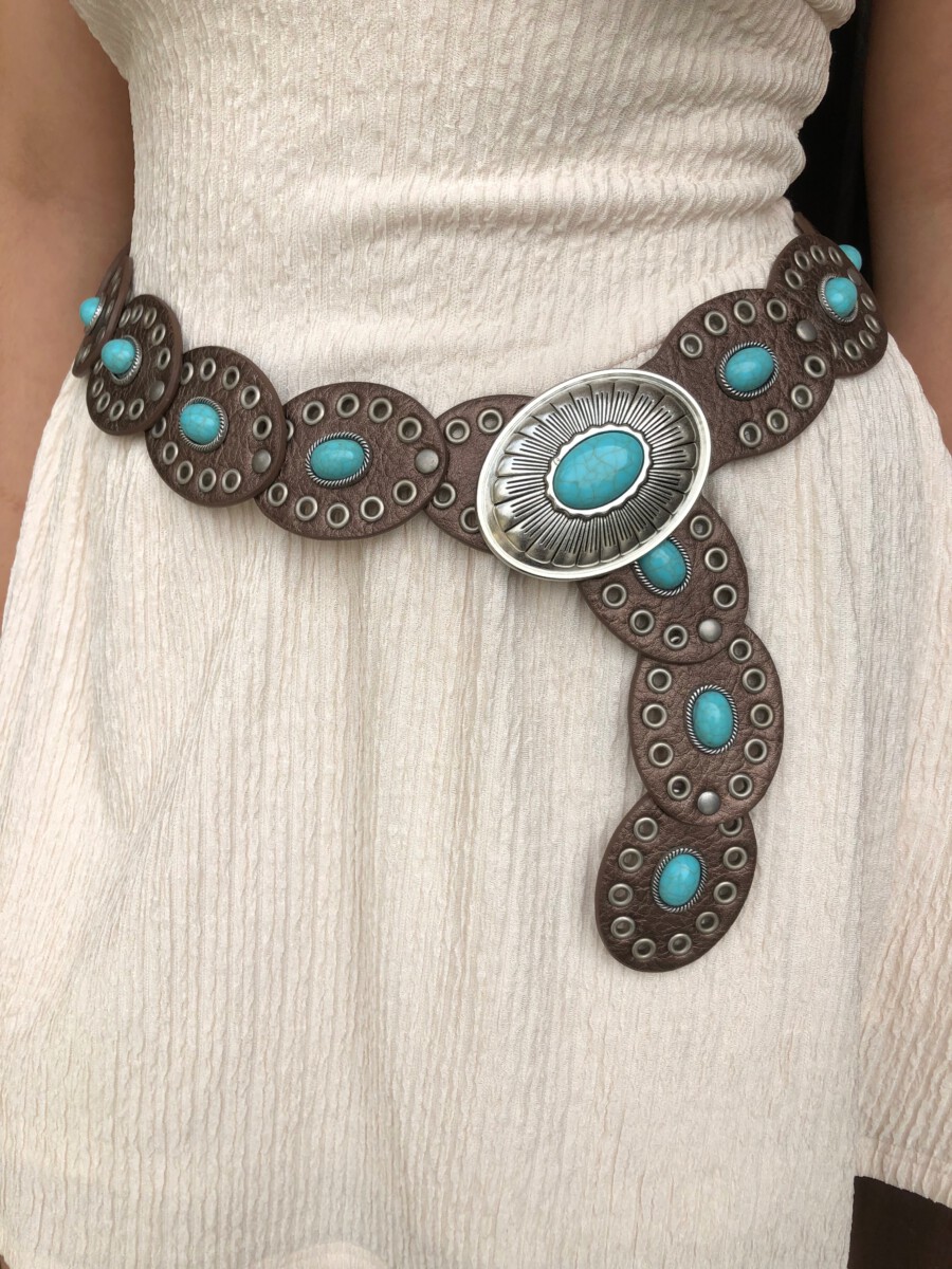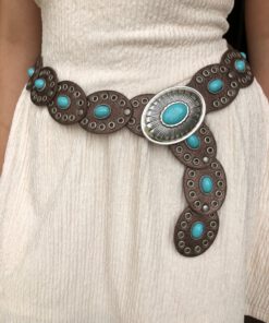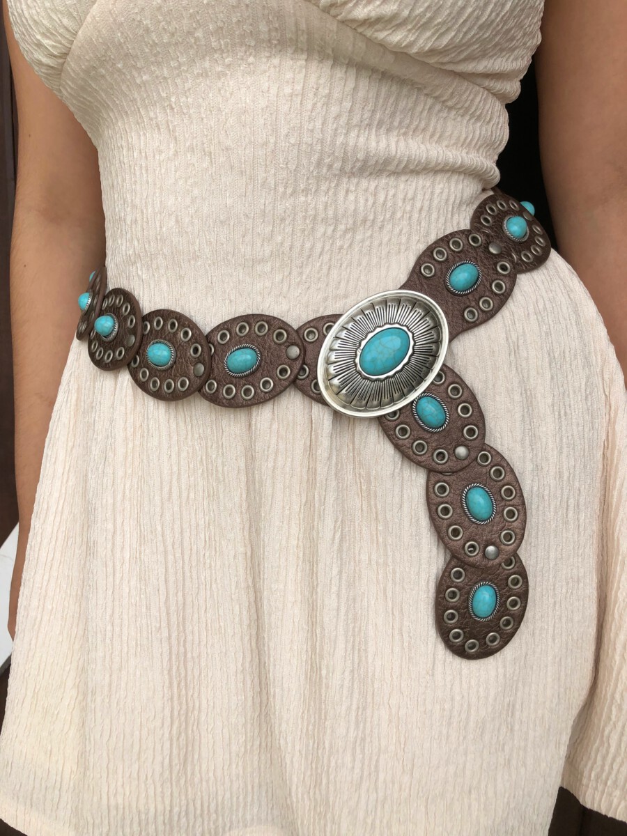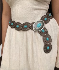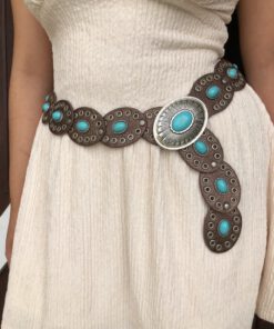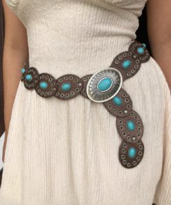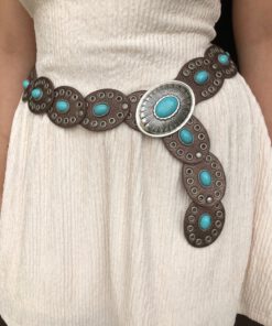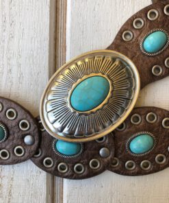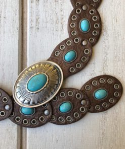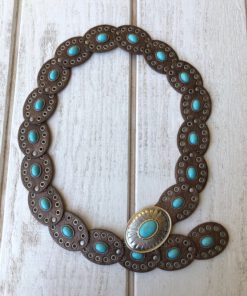 Be the first to review “” Riley ” Western Oval Concho Belt ( Turquoise / Metallic )” Cancel reply