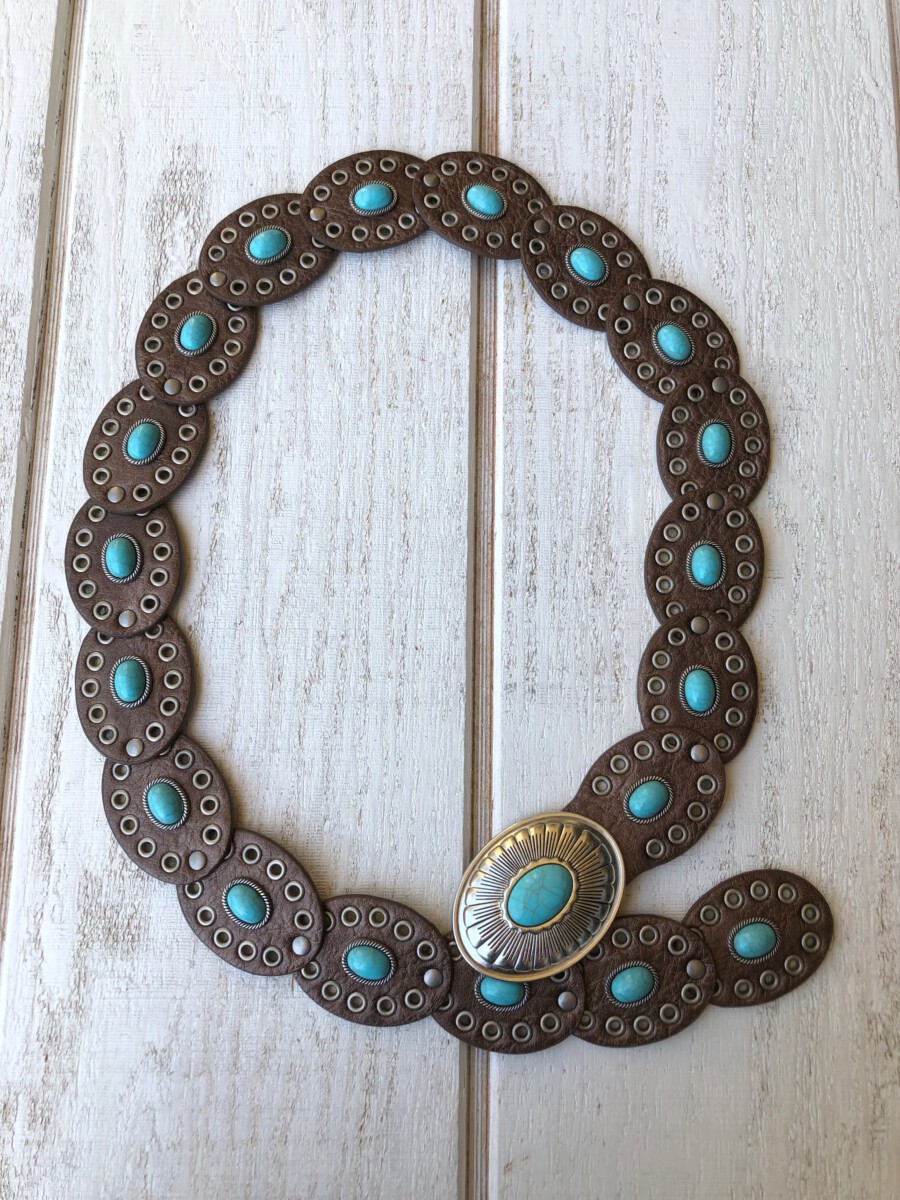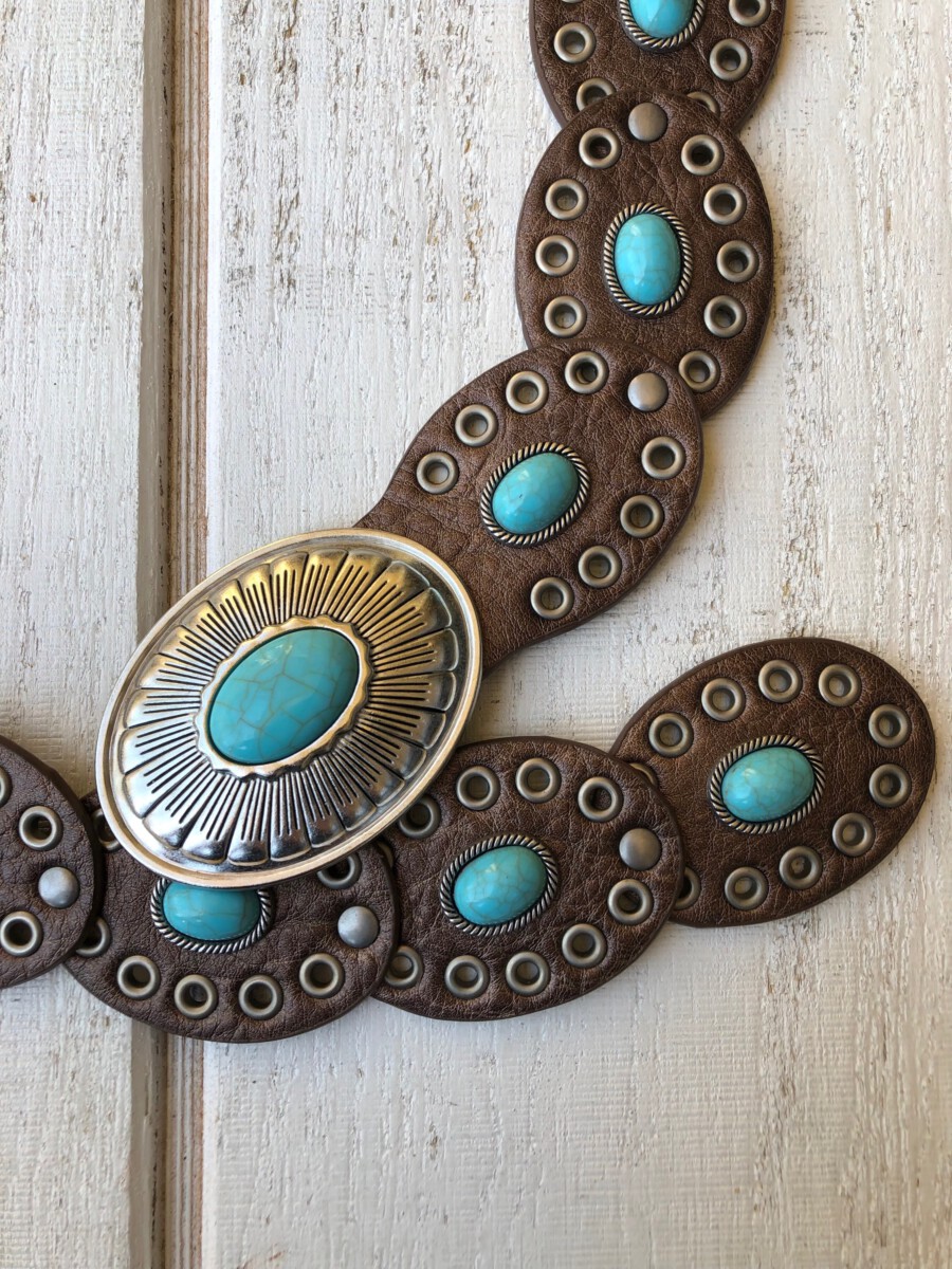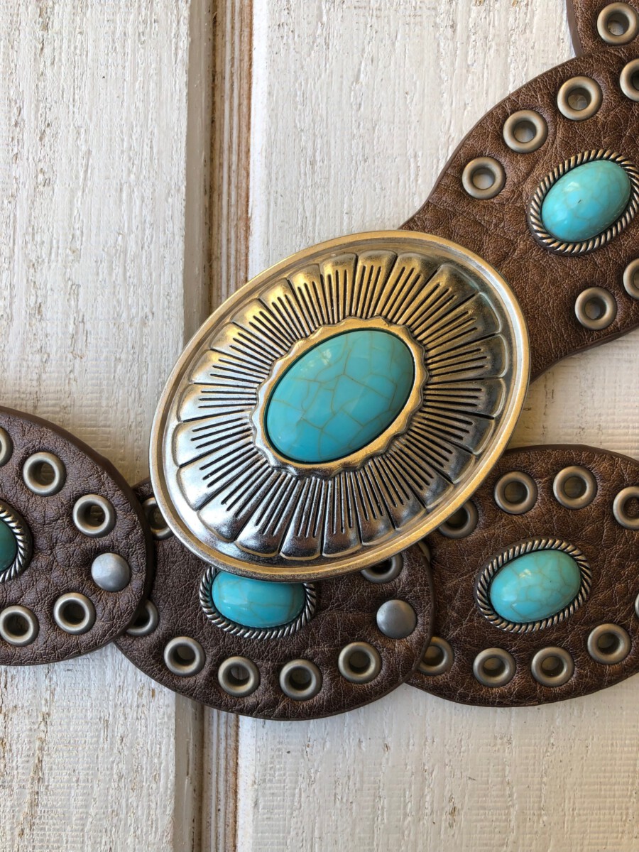 ” Riley ” Western Oval Concho Belt ( Turquoise / Metallic )