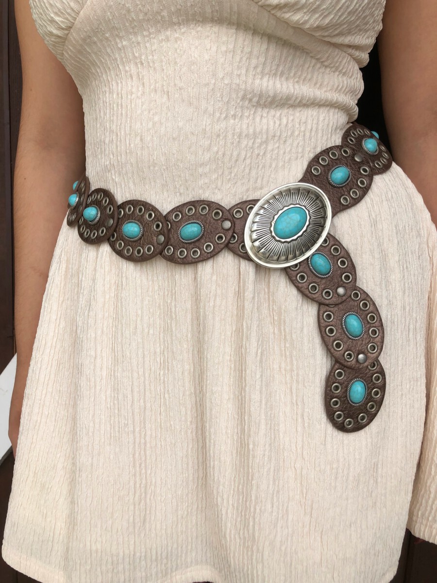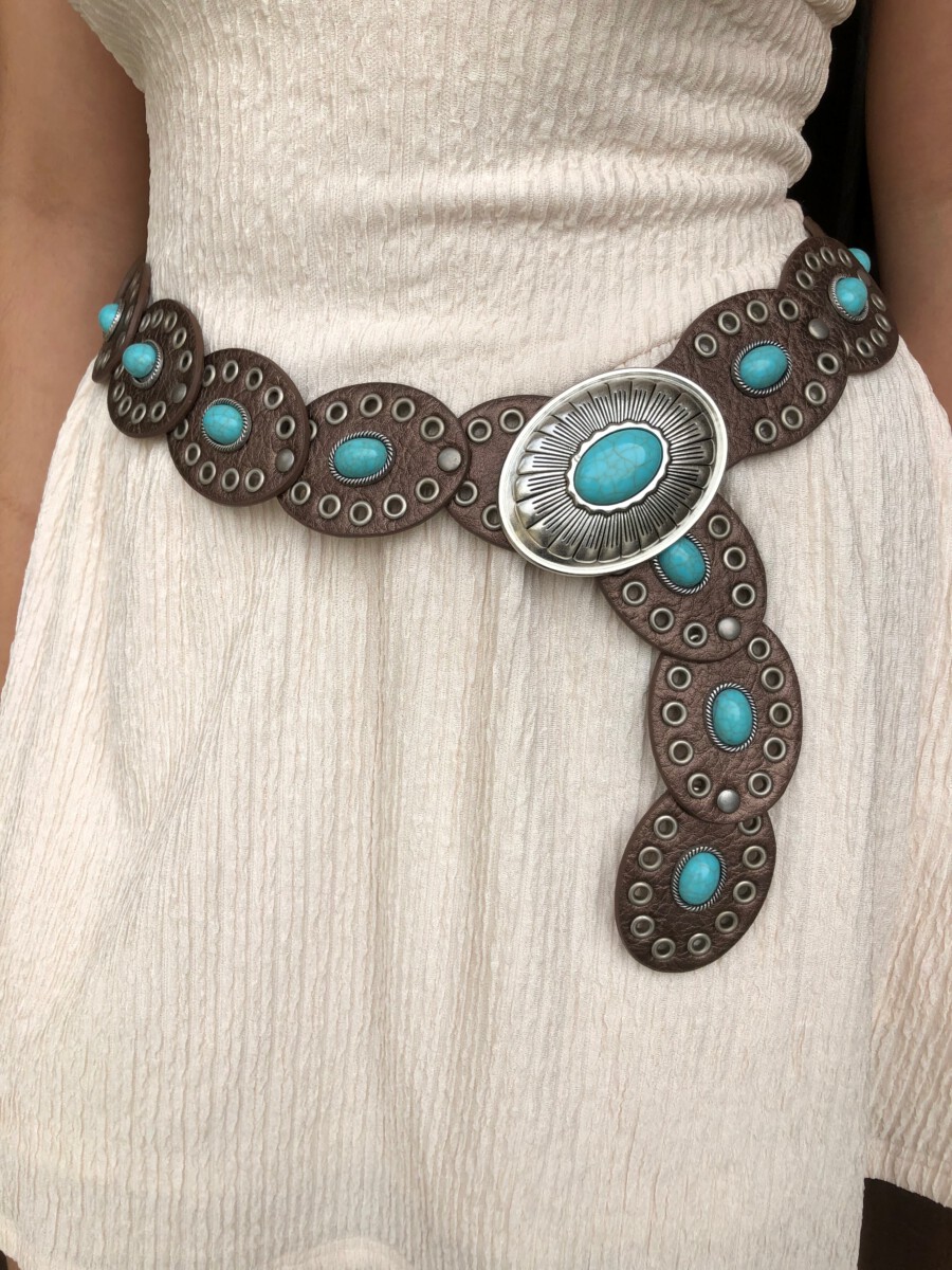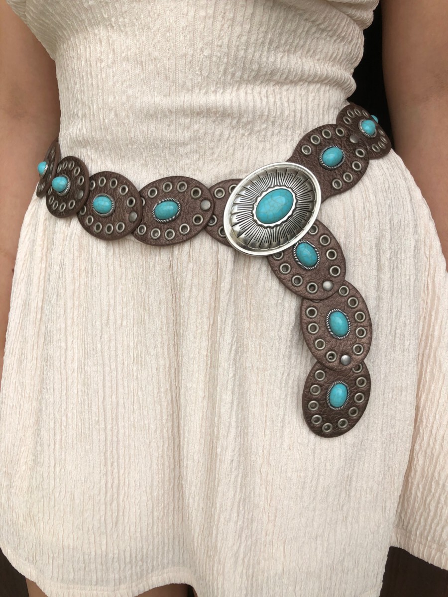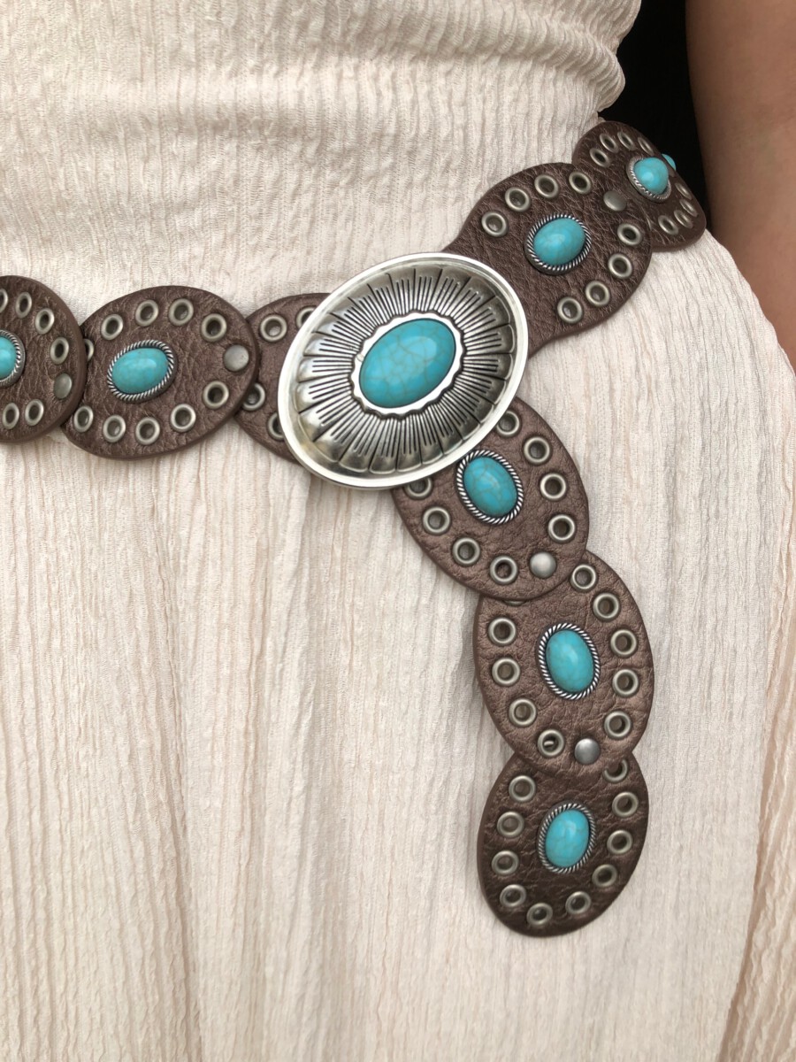 ” Riley ” Western Oval Concho Belt ( Turquoise / Metallic )