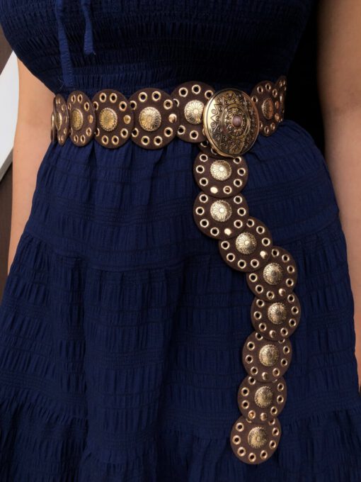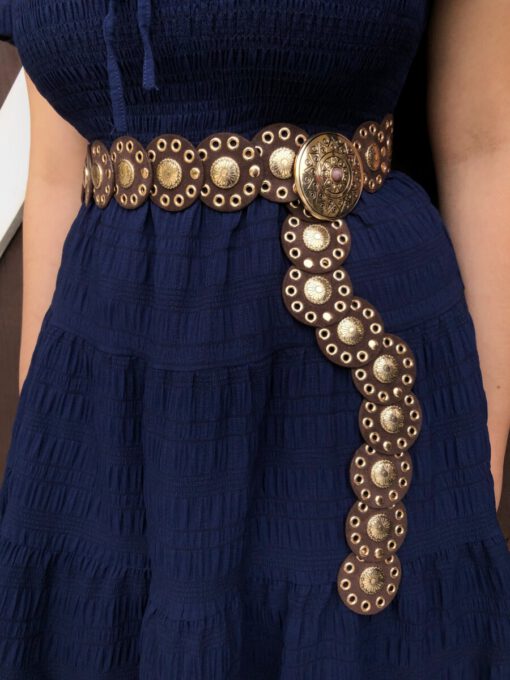 ” Ruthie ” Western Mini Disc Belt ( Brown / Gold )