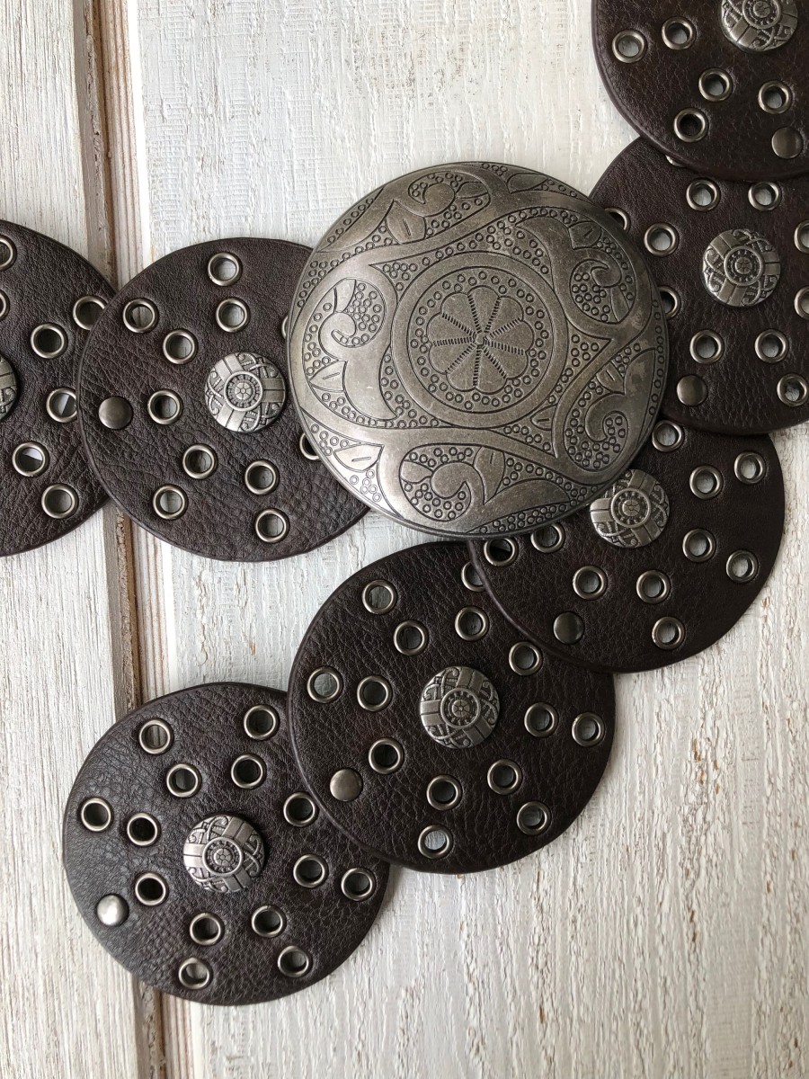 ” Sabrina ” Disc Hip Belt ( Silver / Brown )