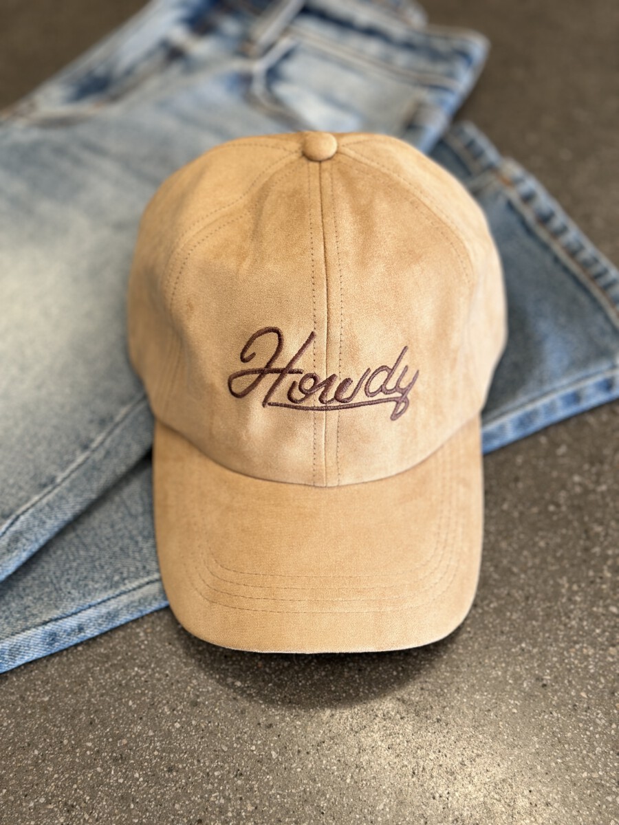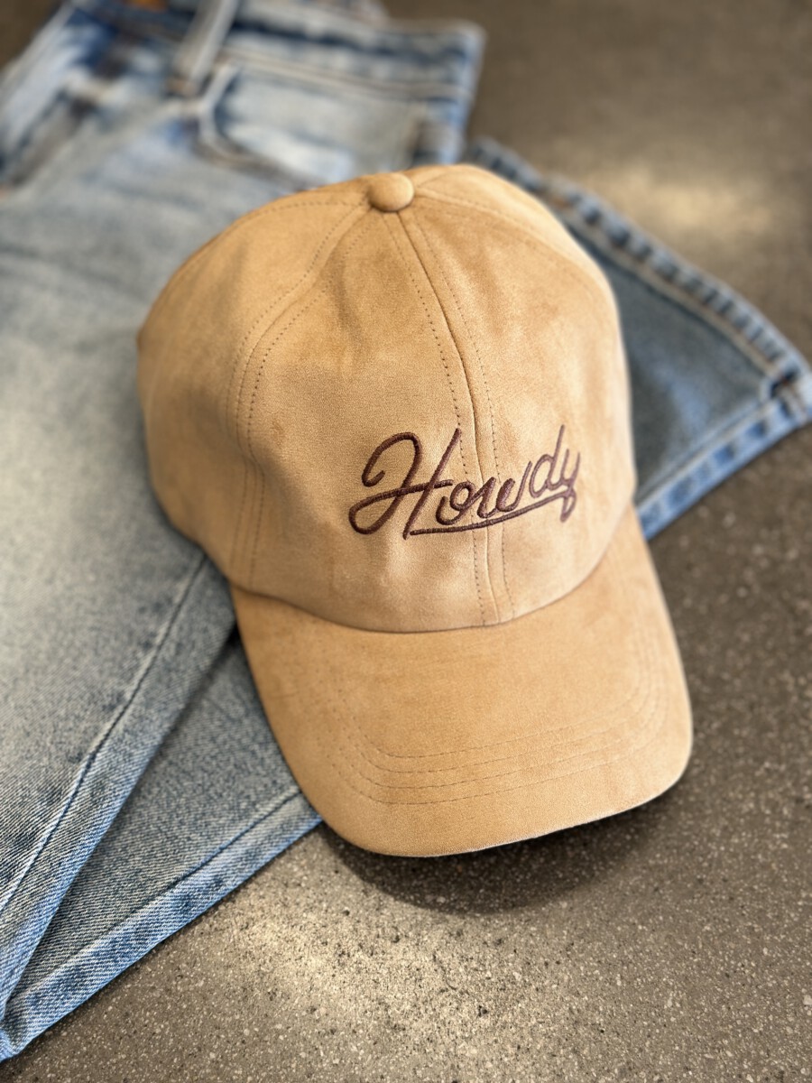 ” Howdy ” Faux Suede Cap ( Tan )