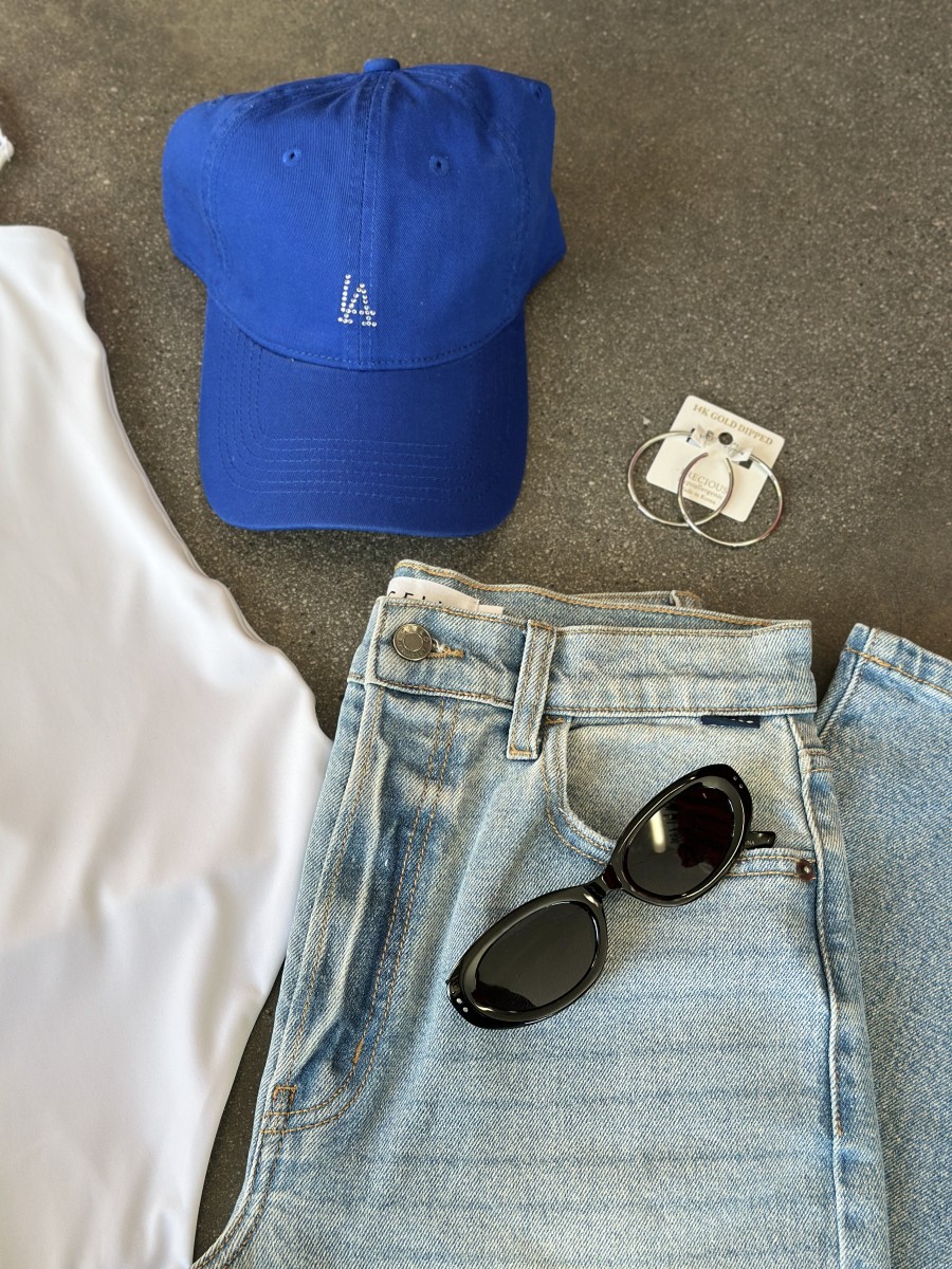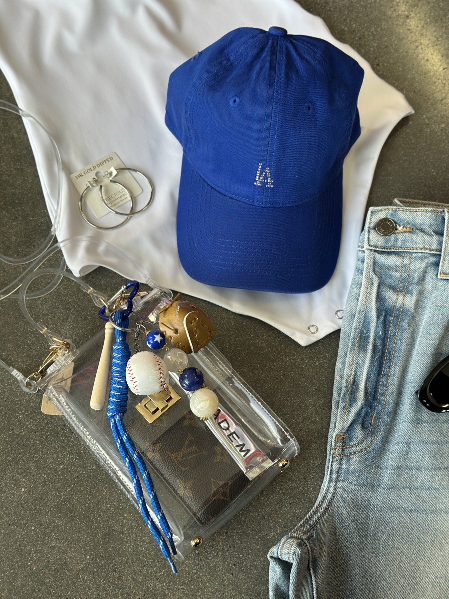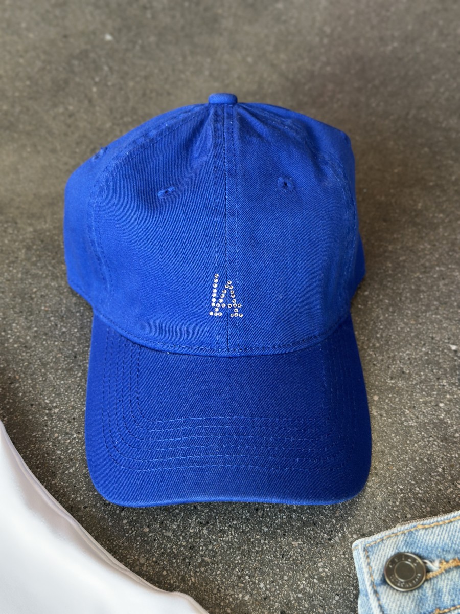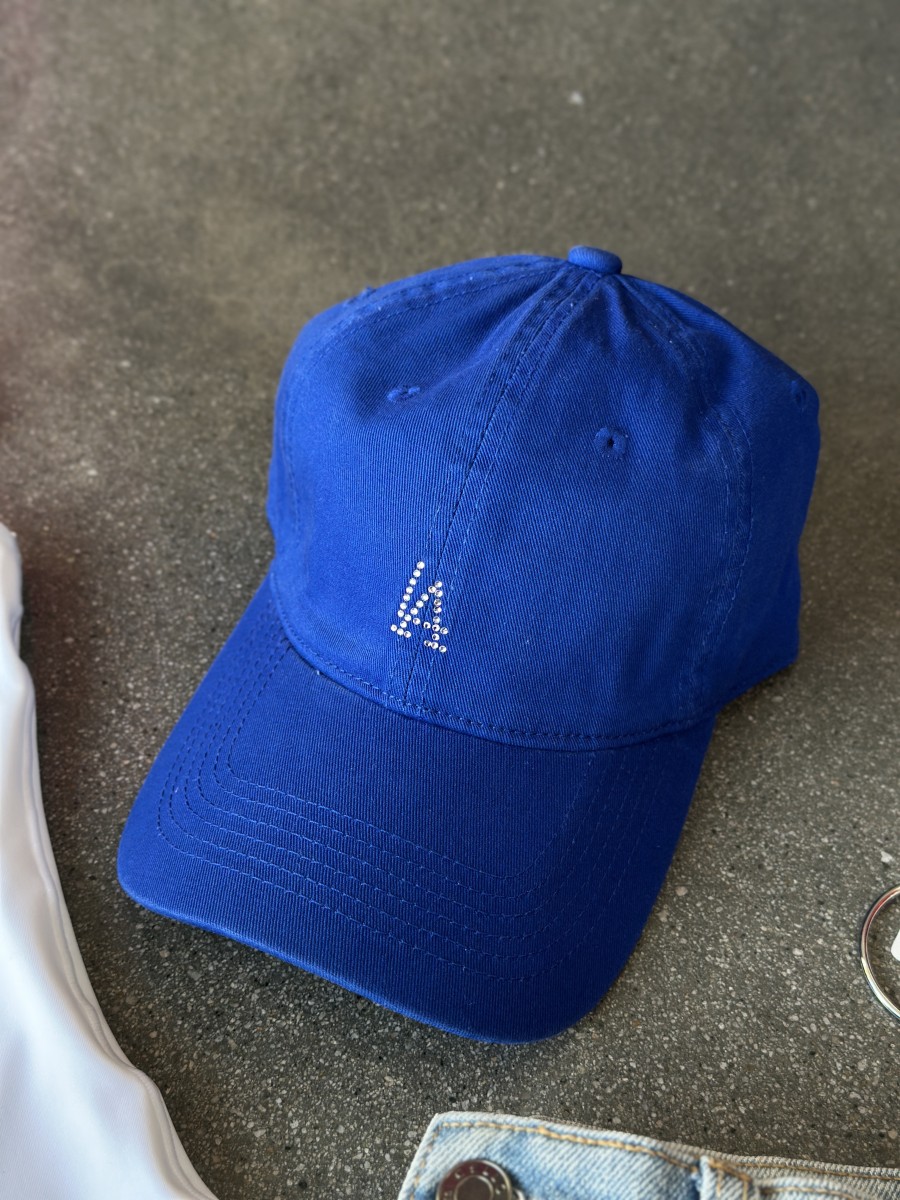 ” LA ” Small Rhinestone Logo Cap ( Blue )