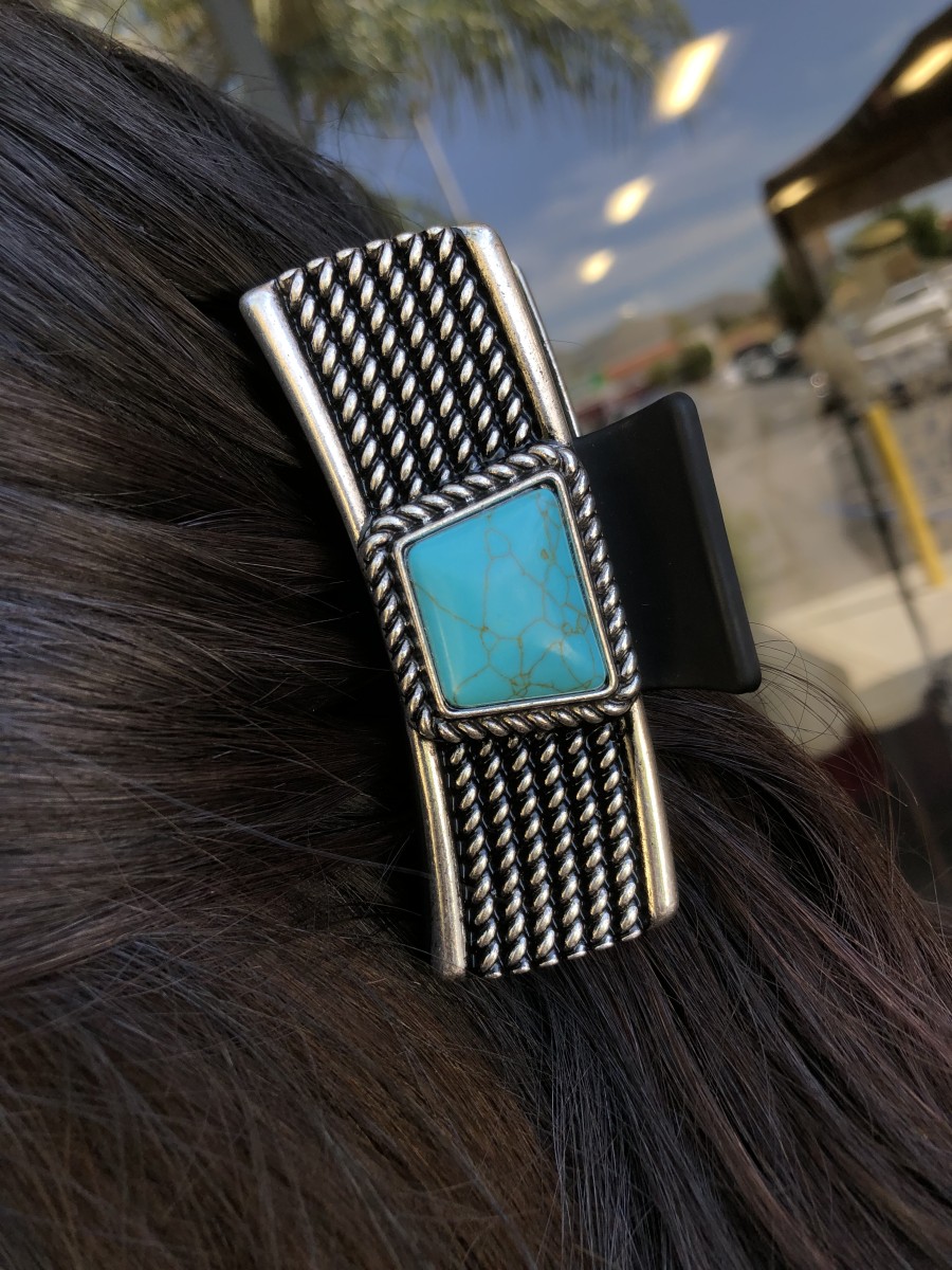 Be the first to review “” Madison ” Western Hair Claw Clip ( Turquoise / Black / Silver )” Cancel reply