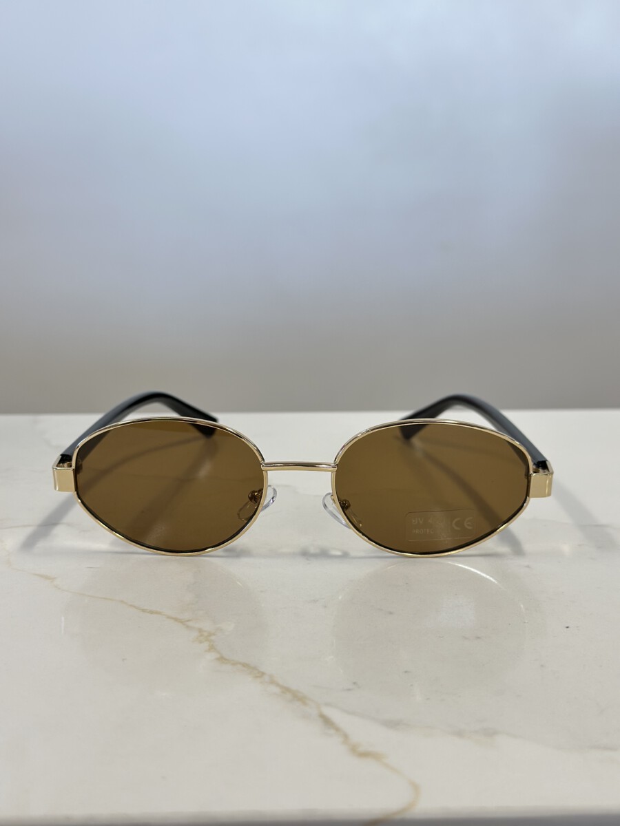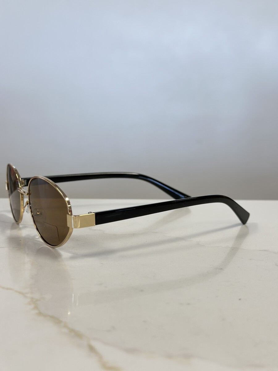 ” Kylie ” Oval Metallic Frame Sunglasses ( Gold / Brown )