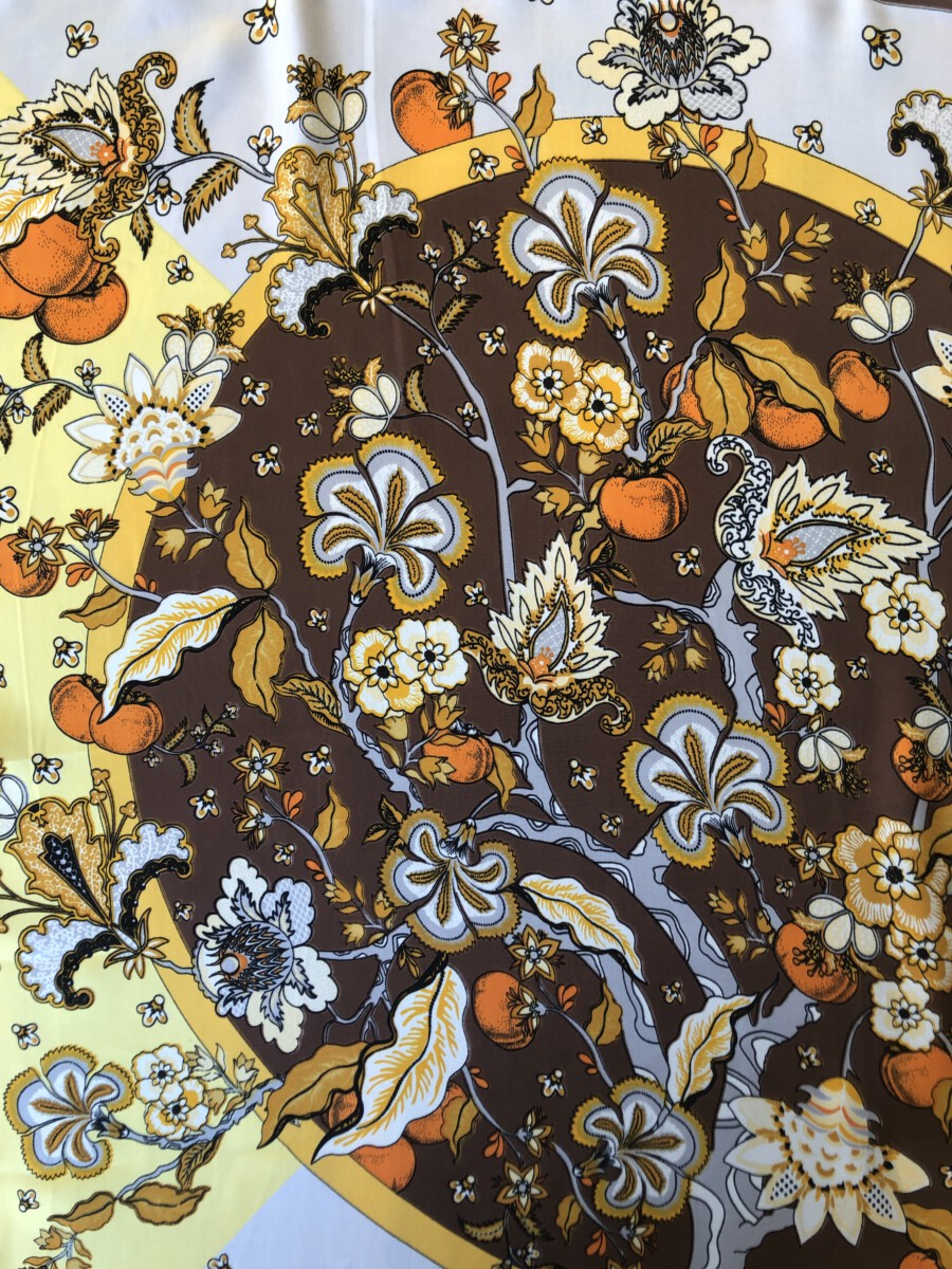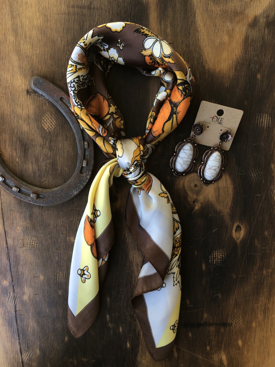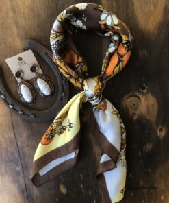 ” Anissa ” Bandana Silk Scarf ( Brown / Yellow )