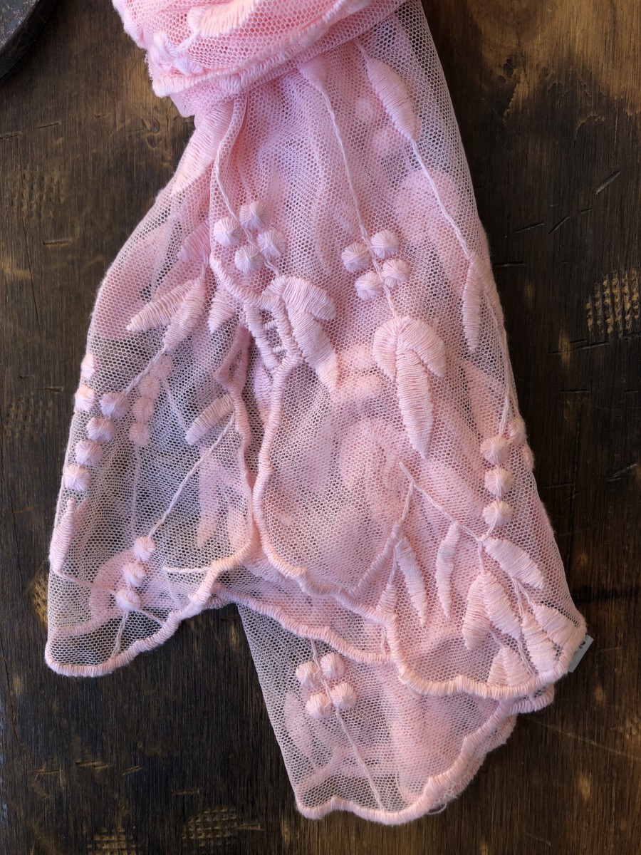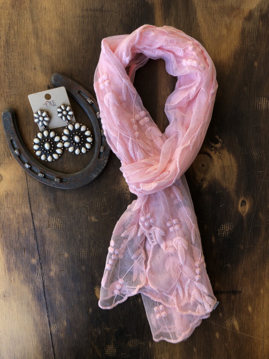 ” Nathaly ” Mesh Embroidered Oblong Scarf ( Pink )
