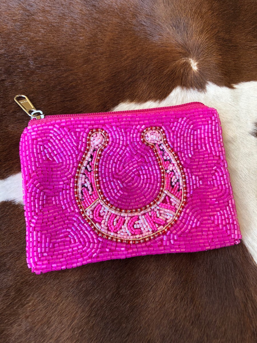 ” Lucky ” Western Horseshoe Beaded Pouch ( Pink )