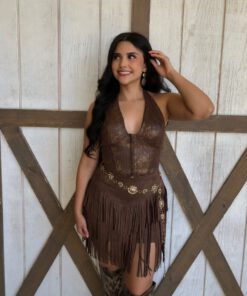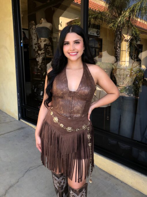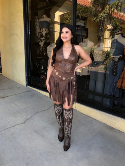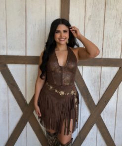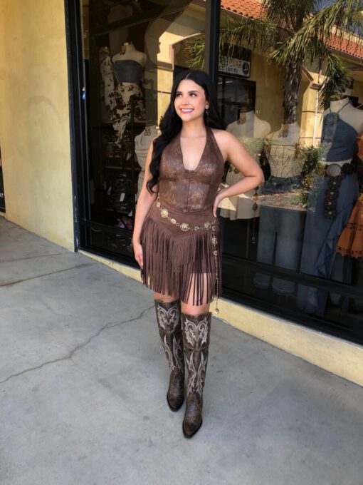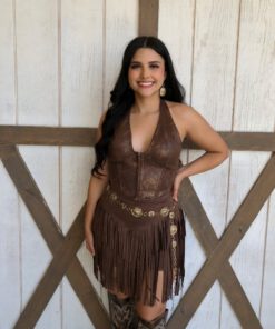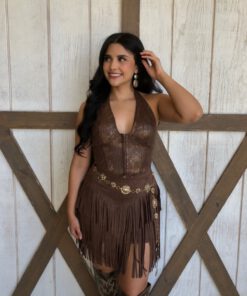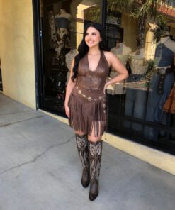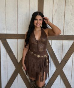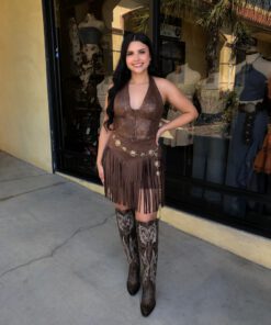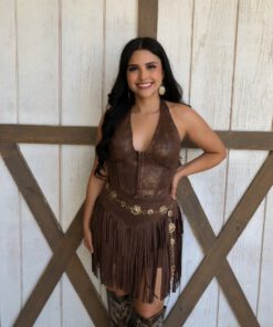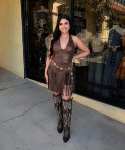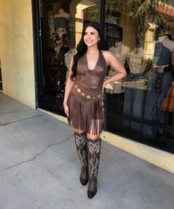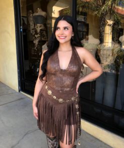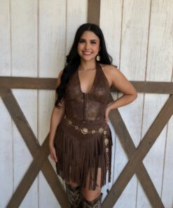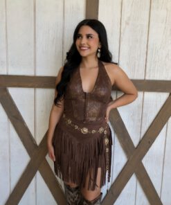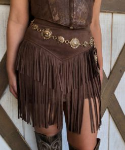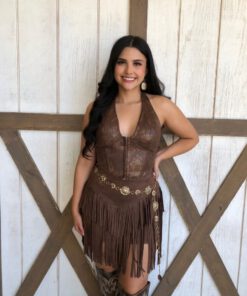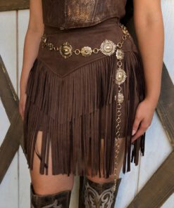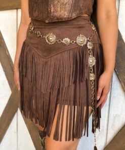 Be the first to review “” Abilene” Faux Suede Fringed Skirt ( Brown )” Cancel reply